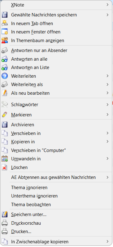 Wie wieder Symbole zu den Kontextmenüs von Thunderbird 68 hinzugefügt werden können