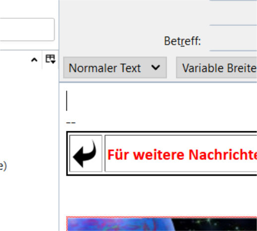 Öffne ich das Fenster mit "Verfassen", sieht alles korrekt aus.