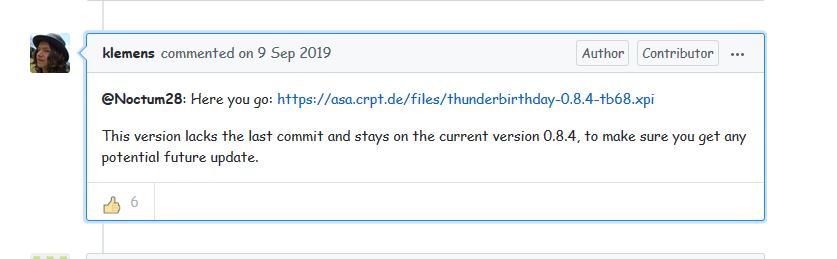 Mahlzeit! Bei der Aktualisierung auf die aktuelle TB-Version erhielt ich die Meldung, daß ThunderBirthdays nicht mehr kompatibel sei. Ungeschickter Weise habe ich das AddOn daraufhin gelöscht. Nun kann ich aber meine Geburstage aus dem TB-Adreßbuch nicht mehr im Kalender anzeigen... :-/.