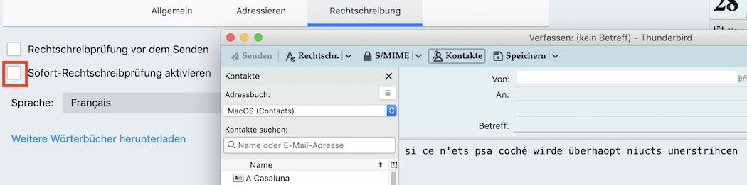 Hat jemand eine Idee, warum die Rechtschreibprüfung nicht korrekt funktioniert?