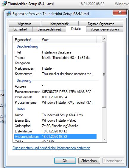Es gibt zwei Wege, wie ich Thunderbird installiere. Entweder nehme ich eine lokal abgelegte msi, welches aktuell diese hier ist: