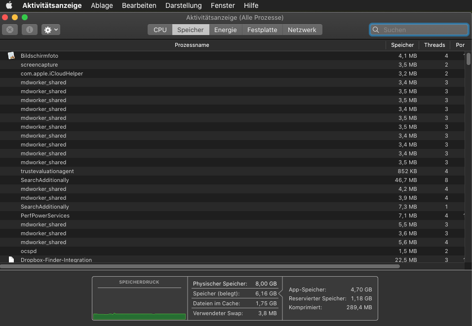 Diese Liste führt sämtliche aktiven Prozesse auf deinem Mac auf und soll helfen, ein etwaiges störendes Programm zu identifizieren.