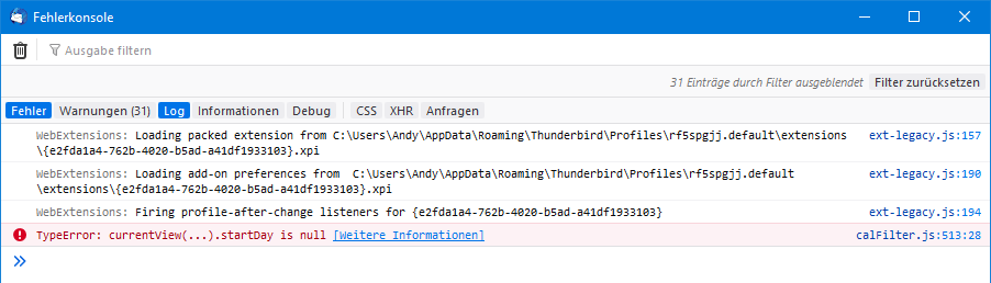 Aktuell bearbeite ich meine Termine primär via Android Handy oder am PC über den "Trick" mit dem abgesicherten Modus, der aber wie beschrieben nur für den 1. Neustart des Thunderbird danach taugt und dann nicht mehr.