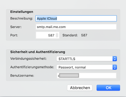 Leider ist es nun, auch seit der vorherigen Thunderbird-Version, so, dass die Konfiguration einen Tag lang funktioniert und am zweiten Tag nichts mehr funktioniert, mit dem Apple Account.