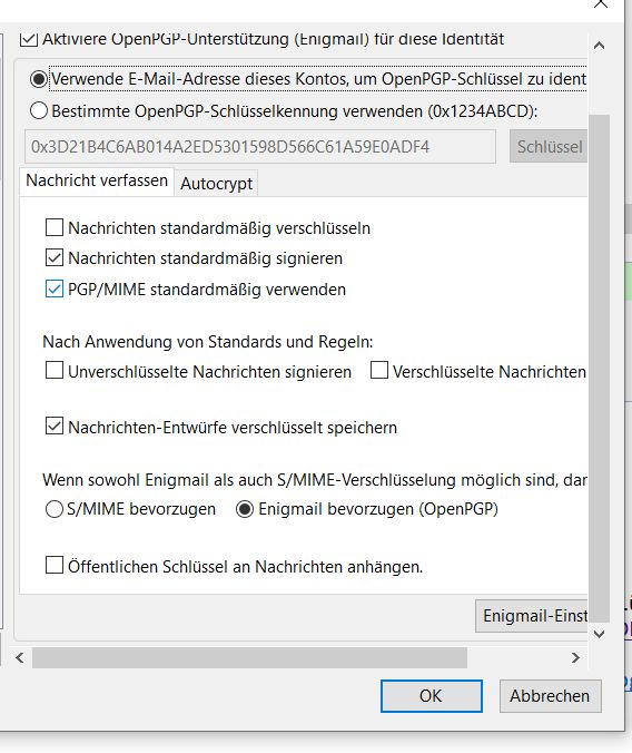 Hat das Thema aus dem Forum OpenPGP Verschlüsselung & Unterschrift nach OpenPGP & Enigmail in Thunderbird-Versionen bis 68.* verschoben.