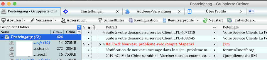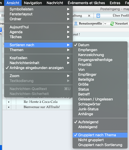 Ich habe nicht Ansicht > Ordner > Gruppiert gemeint, sondern Ansicht > Sortieren nach > Gruppiert nach Thema