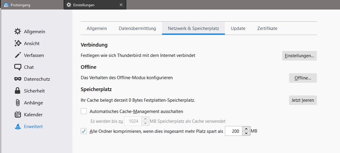 Hilf mir mal auf die Sprünge: Wie komme ich in Thunderbird zu about:cache? Ich selbst habe übrigens nur einen "cache2"-Ordner im Profil.