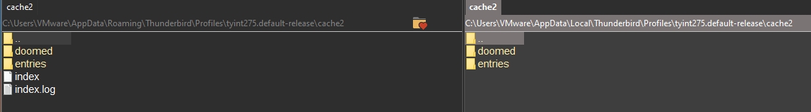 Allerdings sind cache und cache2 tatsächlich vorhanden im *thunderbird*-Profilordner