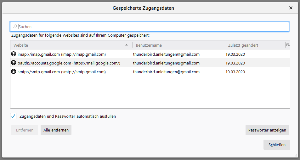 ich versuche immer wider eine Lösung für mein Problem zu finden und komme nicht weiter. Ich habe mehrere Konten bei Thunderbird, welche problemlos funktionieren. Darunter auch ein anderes Google Mail Konto.