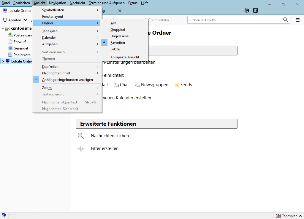 Außerdem finde ich es total ätzend, daß es bei Thunderbird quasi eine doppelte Ordnerstruktur gibt, d.h. den Papierkorb und Postausgang doppelt (je einmal beim Konto und einmal beim Lokalen Order). Den Postausgang gibt es sogar dreimal, den der Gesendet-Ordner is ja auch ein Postausgang.