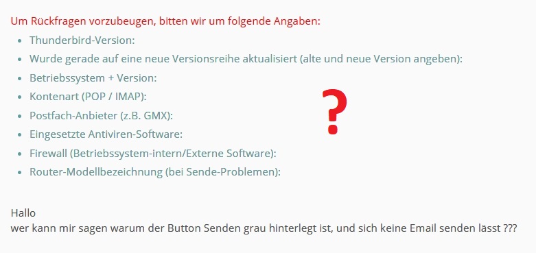 wer kann mir sagen warum der Button Senden grau hinterlegt ist, und sich keine Email senden lässt ???