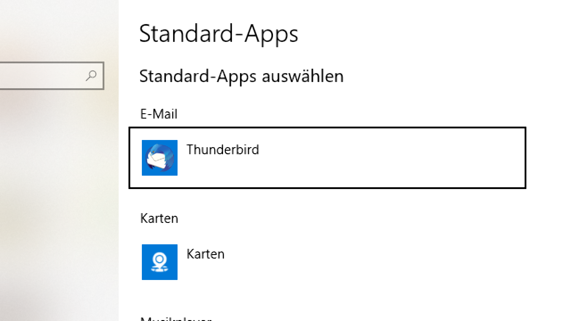 Seit einiger Zeit, genau seit wann, weiß ich nicht, fällt mir auf, dass auf meinem System kein Standart- Mail-Client definiert ist. Wenn ich zum Beispiel aus den Windows-Explorer Bilder als Mail versenden will, bekomme ich eine Fehler-Meldung (siehe Bild). Obwohl in den Einstellungen Standart-Apps/.. auswählen/E-Mail TB vorgeschlagen und ausgewählt wurde. (siehe Bild).