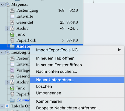 In Entwürfe, Gesendet und Papierkob schaue ich selten rein. Da ich auf der linken Seite in Thunderbird aufgrund mehrerer Konten und RSS-Feeds wenig Platz habe, möchte ich Entwürfe, Gesendet & Papierkob gerne in einen Unterordner -- z.b. "Anderes" genannt - zusammenführen.
