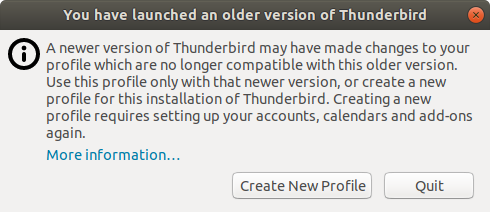 Zusammengefasst, neues Profil und älterer Thunderbird = nix gut.