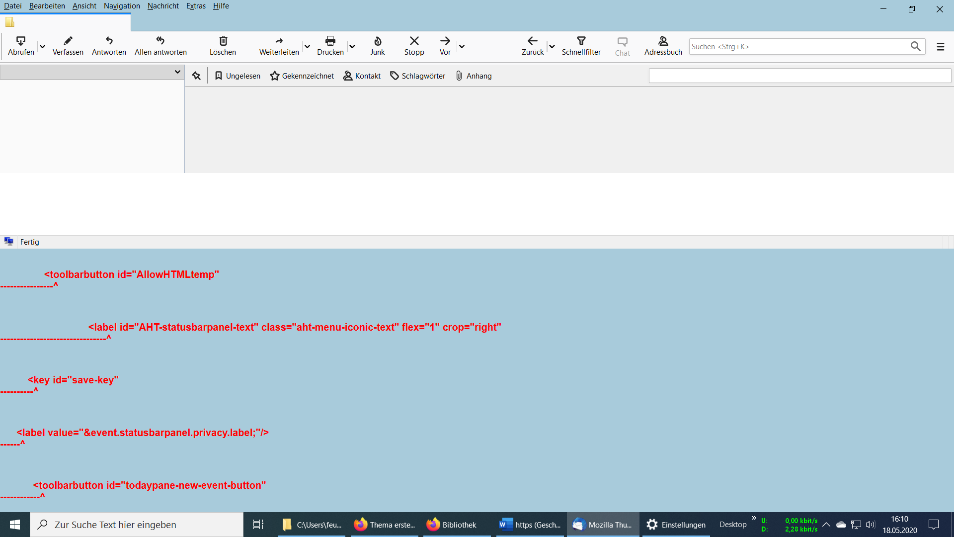 ich leide derzeit unter einem merkwürdigen Thunderbird-Problem.