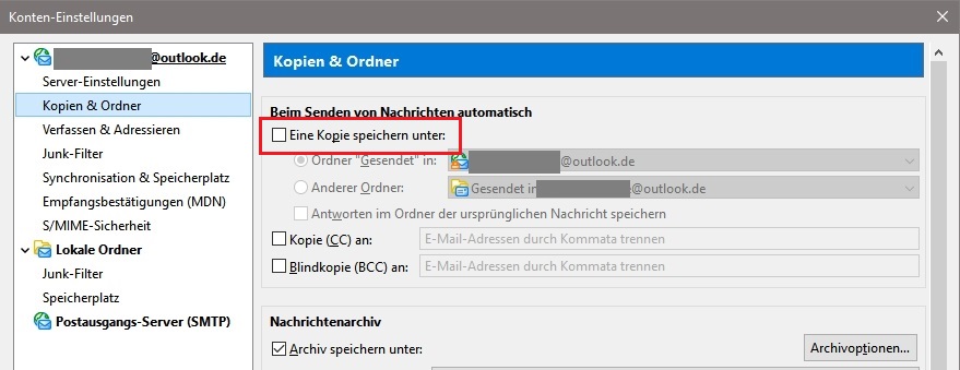 die doppelten gesendeten Mails sind ja dann das lokale Abbild oder nicht?