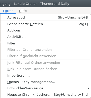 In Thunderbird Beta 77 und Daily 78 fehlen beide Menüfunktionen: