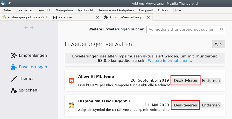 (Bildschirmausdruck von Thunderbird 68)