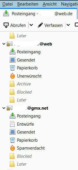 Über WEB-Browser habe ich die Accounts direkt auf web.de und gmx.net geprüft. Da sind sie nicht vorhanden.