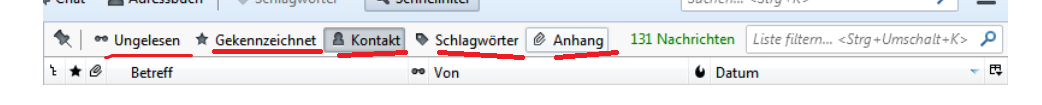 Anbei zur Verdeutlichung zwei Screenshots wie es bei mir aussieht und wie es aussehen sollte. Ich sehe Bsp. nur das Icon für Ungelesen aber nicht die Bezeichnung.