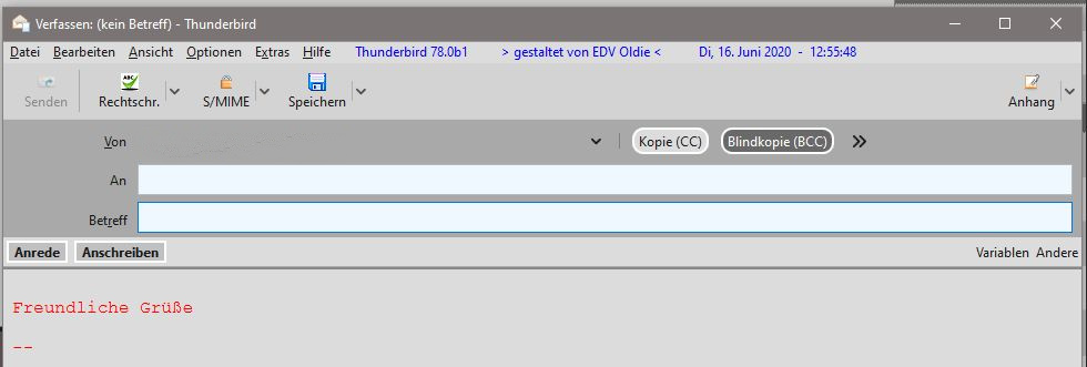 Der Text im Verfassenfenster hatte ich noch nicht angepasst, die Farbe bekomme ich mit html ins das Fenster.