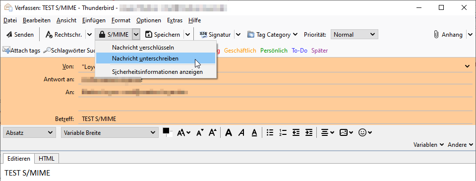 Prüft man dann die Einstellungen für das Konto unter S/MIME-Sicherheit