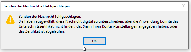 Beim Versenden kommt dann statt der PIN-Abfrage ff. Fehlermeldung: