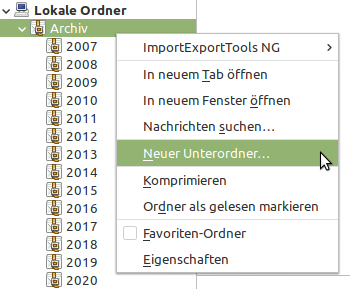 Da muss ich mir wohl selbst auf die Finger klopfen. Dein Hinweis hat mich auf die richtige Spur gebracht. Ich hatte bisher immer die neuen Unterordner von Hand angelegt (Att.) und anschliessend die die zu archivierenden Nachrichten mit der Suchfunktion ausgewählt und verschoben :O