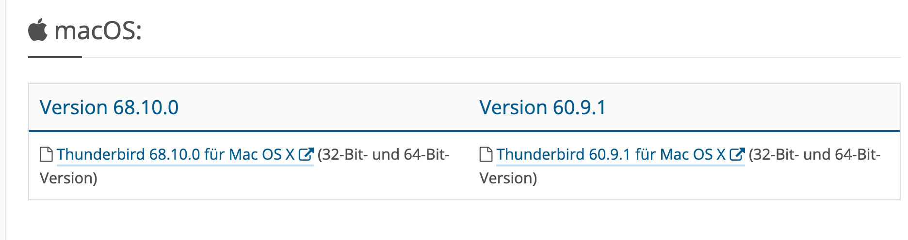 der Link dort verweist (für MacOS) aber nicht auf https://www.thunderbird.net/de/, sondern auf den direkten Download von https://download.mozilla.org/?product=thund…&os=osx&lang=de ;)