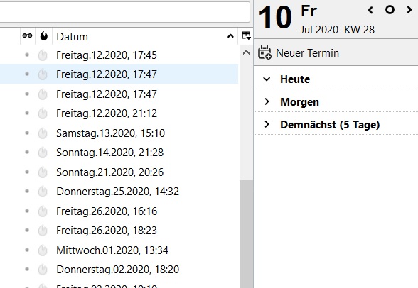 OK, ich habe das jetzt verstanden. Rechts ist wie Edvoldi sagt der Kalender, der mir fremd ist, heißt, ich habe keinen,