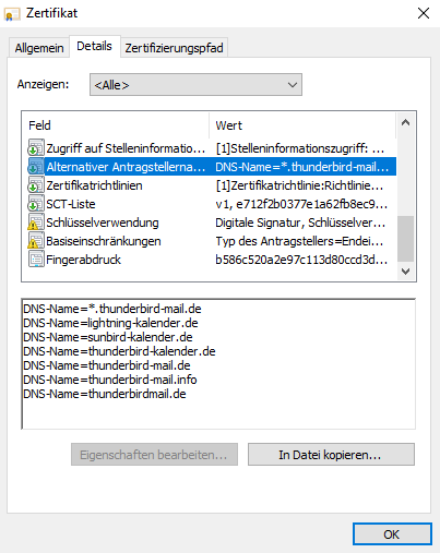 Sichere Kommunikation mit der Gegenstelle ist nicht möglich: Angeforderter Domainname stimmt nicht mit dem Zertifikat des Servers überein.