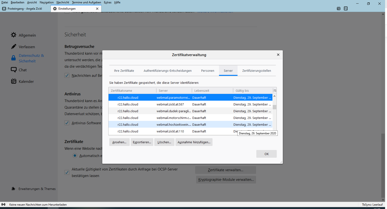 Nach einen weiteren Tag, habe ich auch gemerkt, das Mails nicht abgerufen werden können.