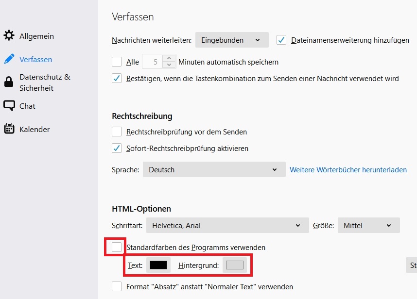 Nach Update auf Version 78 . Bei verfassen einer mail ist der Hintergrund schwarz und die Schrift weiß. Habe kein Darkthema eingestellt. Sondern Light.Wie bekomme ich wieder eine weiße Schreibfläche ? Problem tritt nur beim Verfassen auf.wenn ich die gesendete email später anschaue,ist der Hintergrund wieder normal weiß.Danke für eine Hilfe.![]()