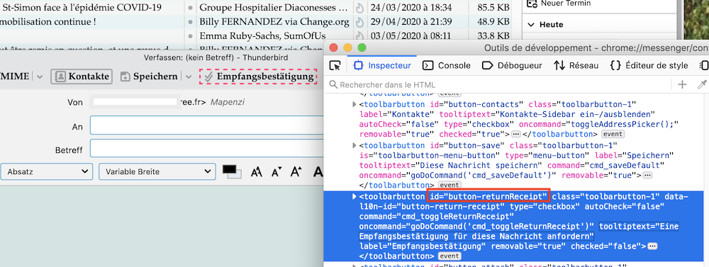 Empfangsbestätigungs Knopf im Composer Fenster und leider konnte ich die id nicht per Inspektors
