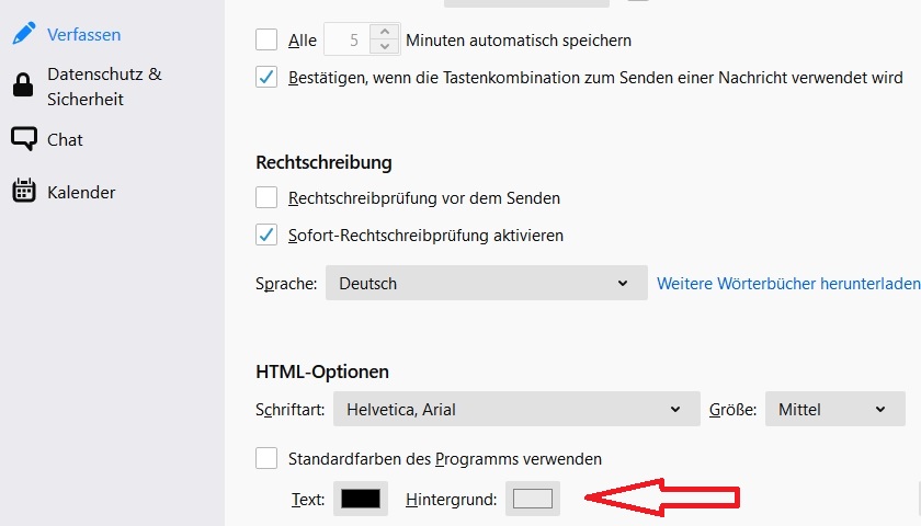 Ich hab TB78 Neu installiert und neben den bekannten Problem mit alten Einstellungen von TB68 (was eine Katastrophe ist) stört mich am meisten das ich keine normalen Emails mehr schreiben kann weil, egal welches Theme ich installiere immer Text in weis mit schwarzem Hintergrund bei neuem Email angezeigt wird. Leider kommt das auch so beim Empfänger an. Wie kann ich das beheben?