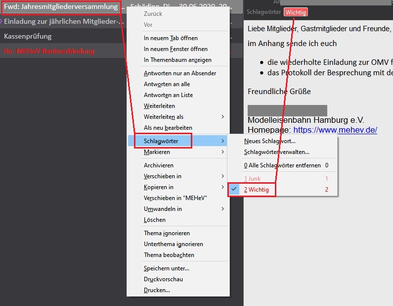 Einige meiner Mails sind mit "Wichtig" "NoneJunk" o.a. getaggt/etikettiert.