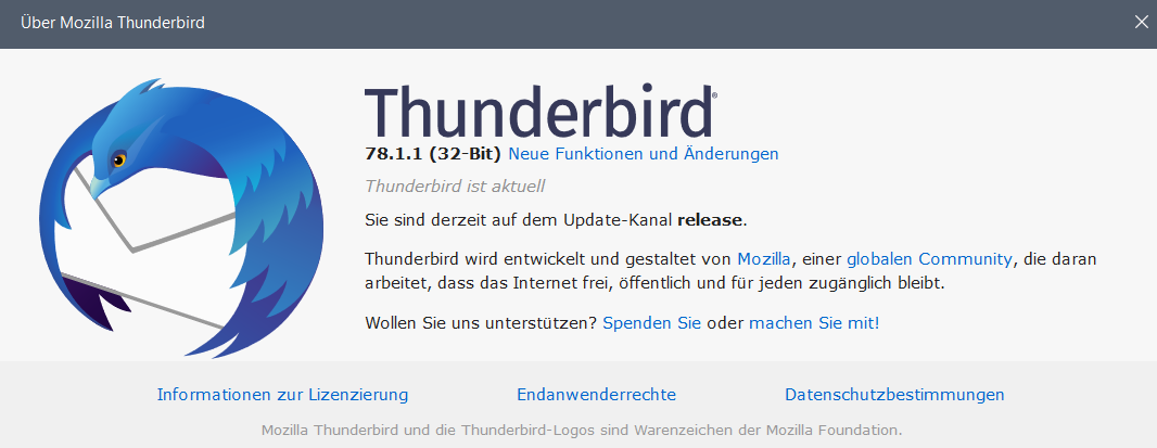 - Thunderbird-Version (konkrete Versionsnummer):78.1.1 (32-Bit)