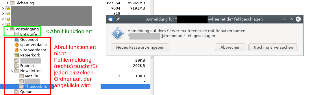 In meinen drei Hauptprofilen (identisch hinsichtlich der Anzahl der IMAP- und POP3-Konten) nerven aber wenig aussagekräftige Fehlermeldungen, die seit etwa 48 Stunden mal in dem einen Profil und den beiden anderen Profilen nicht, und auch nicht immer aufploppen.