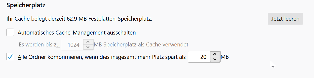 Bei diesen Speicherplatzangaben sollte man am besten immer sowohl den Platz auf dem Datenträger bzw. die Größe des Profilordners per Windows-Explorer als auch die Angabe in Thunderbird parallel betrachten. Thunderbird selbst hat manchmal suspekte, falsche Größenangaben an dieser Stelle.