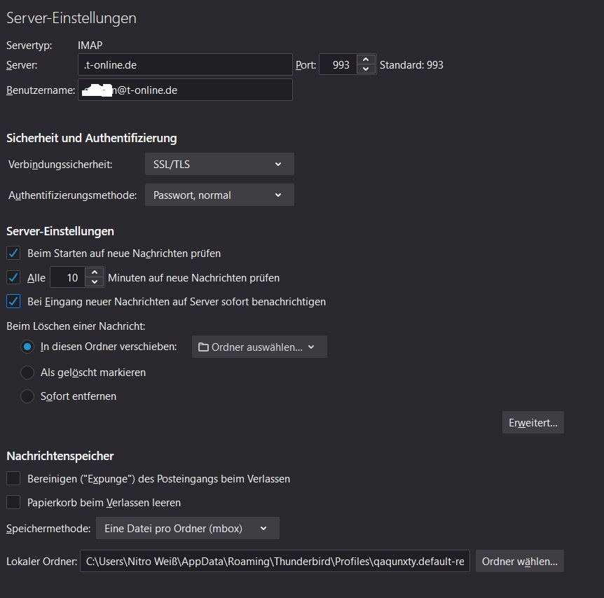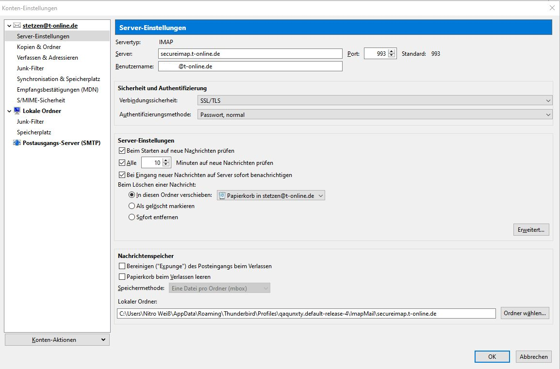 Vermutlich liegt der Fehler bei dir und nicht bei mir, denn der IMAP-Servereintrag .t-online.de in deinem Screenshot ist falsch bzw. unvollständig. Bei mir steht da: secureimap.t-online.de