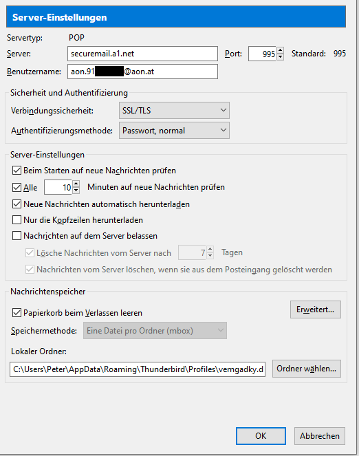- Postfach-Anbieter (z.B. GMX): A1-Telekom