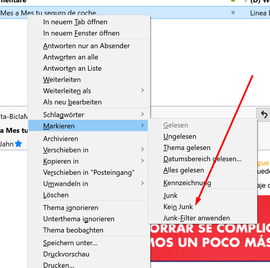 Danke, ich dachte, dass es eine Möglichkeit gibt, diese Email, die sich noch im Spam-Ordner befindet, anzuklicken und als "Kein Spam" zu kennzeichnen....