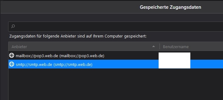 ... es müssen 2 Einträge vorhanden sein, 1x POP3 und 1x SMTP