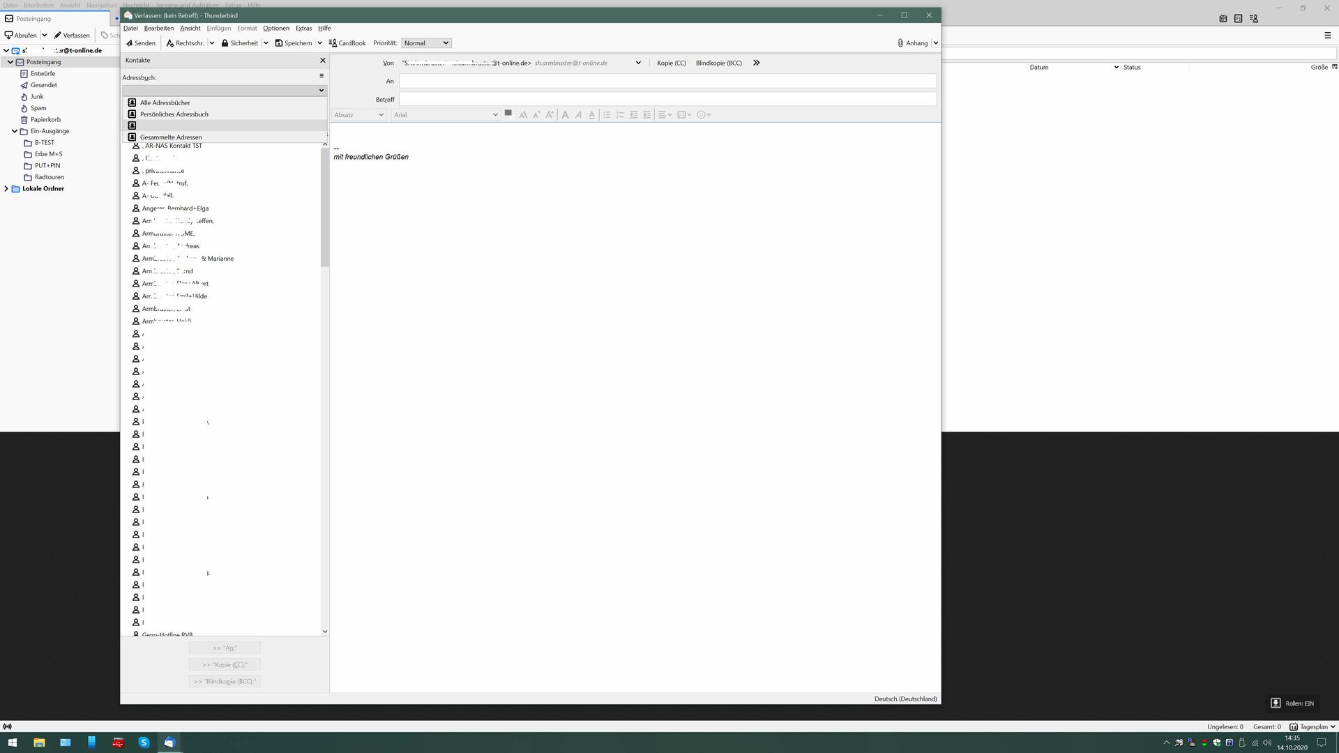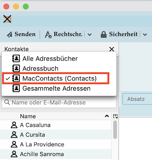 Trotzdem wird nach erstmaligem Drücken von "Verfassen" ein altes TB Adressbuch angezeigt und nicht das gewünschte CARDBOOK Adressbuch !