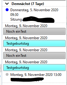 Das Phänomen tritt unabhängig davon auf, wann die Einträge erstellt wurden, ist auch nicht an die verwendetet Kalenderdatei gebunden und auch nicht mit Erinnerungen gekoppelt. Einfache, zeitlich begrenzte Wiederholungstermine verhalten sich unauffällig (der letzte Temin ist ein solcher). Getestet habe ich auch zeitlich begrenzte Termine im Jahresabstand - auch unauffällig.