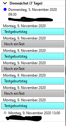 Auch wenn nicht notwendigerweise Geburtstage im Wochentakt anstehen, wage ich die Behauptung, dass das Problem mit der Vervielfachung solcher Jahrestage erst seit Version 78 auftritt. Es beginnt, gleich in welcher Ansicht (Kalender oder Mail) ganz harmlos, zuweilen aber auch schon mit einer Verdopplung der Einträge. Nach längerer Zeit wächst die Liste an. Es besteht also der Verdacht, dass die Liste mit den Aktualisierungszyklen wächst.
