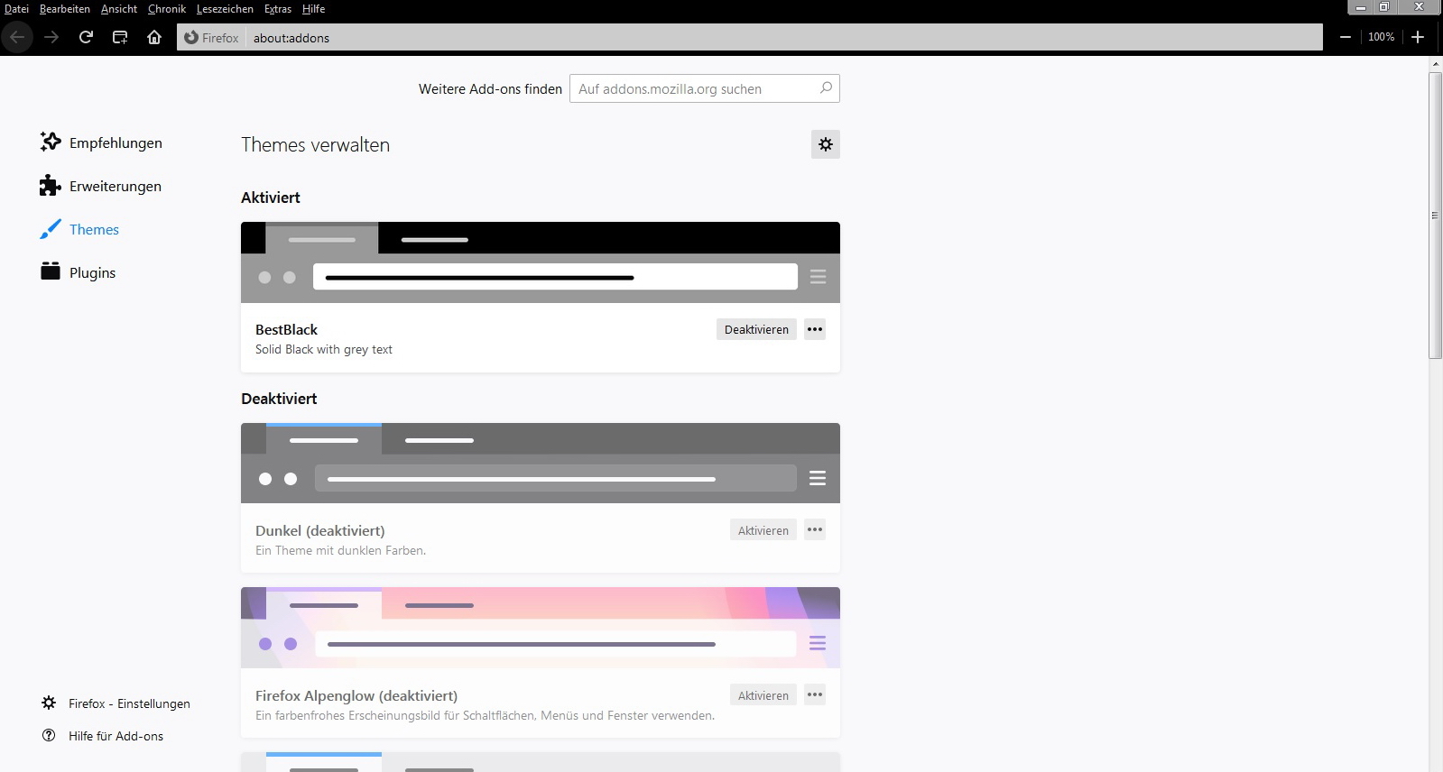 Als aktuelles TB-Theme verwende ich "Standard":