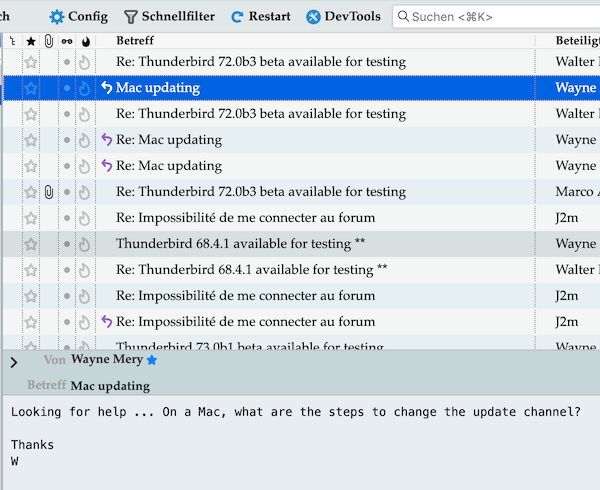 • Nach Update auf Vers. 68.6.0 Emails der letzten 3 Monate weg