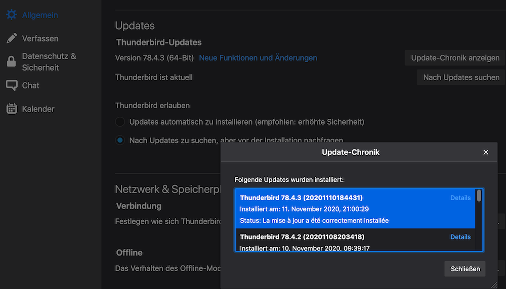 • Thunderbird-Version (konkrete Versionsnummer): 78.4.3 (64 bit)