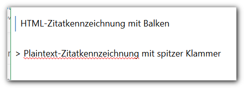 Jedoch fand ich die Kennzeichnung von Zitaten im Plaintext mit "> " sehr viel geschickter.